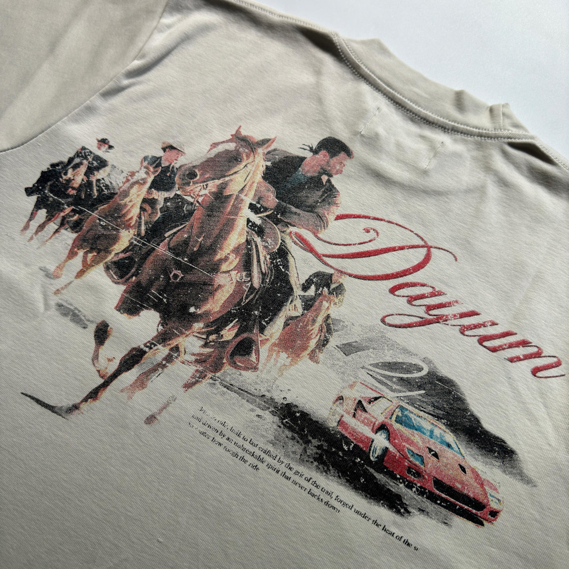 Ride into the future with the bold spirit of the past. The COWBOY 001 T-shirt fuses the rugged charm of classic cowboy horses with the sleek power of modern supercars, inspired by the iconic (Ferrari F40). This design bridges the wild, untamed energy of the cowboy era with the precision and speed of today's automotive legends.