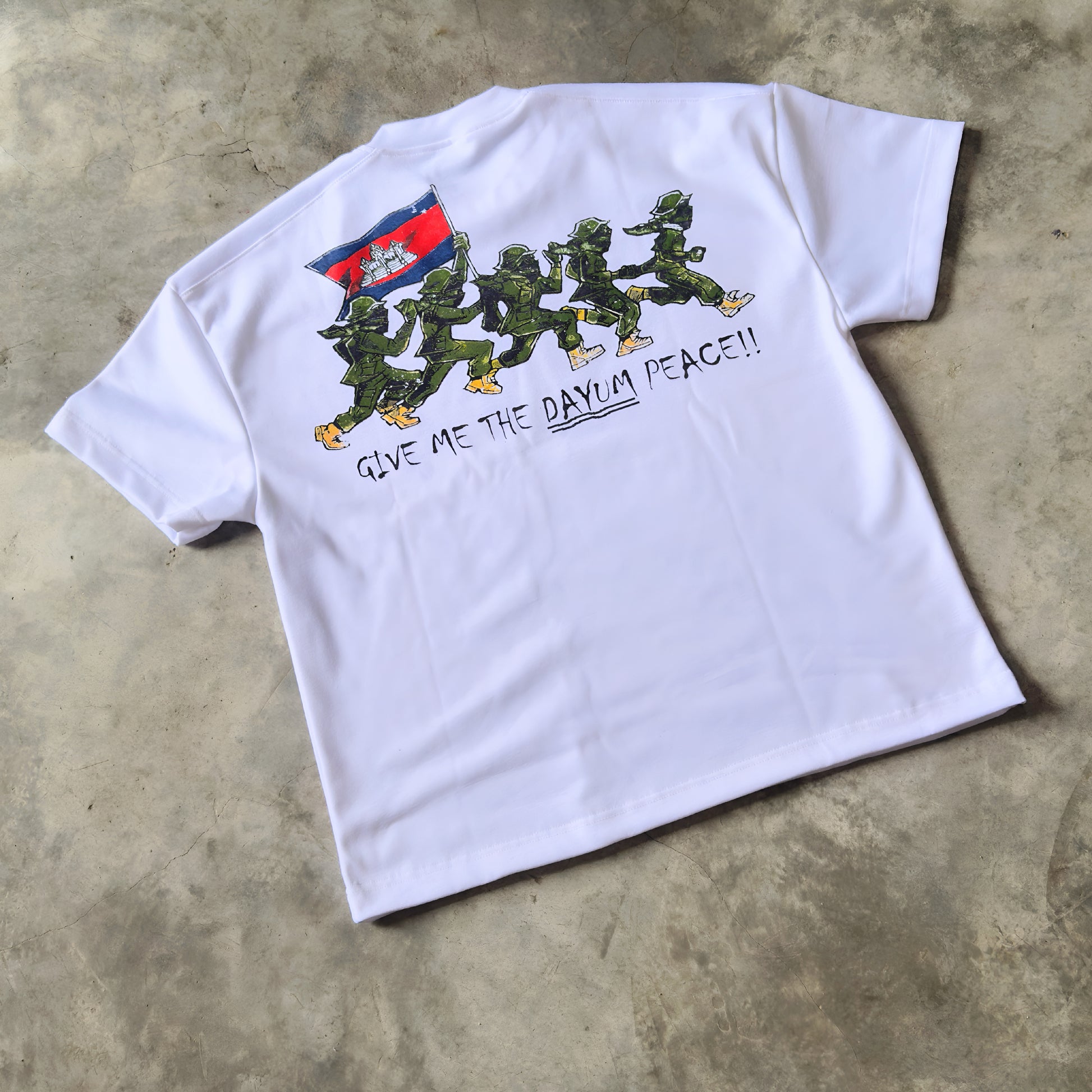 A symbol of strength, unity, and peace. Inspired by the spirit of Khmer soldiers — brave hearts who fought not for fame, but for peace in their land. This tee stands for every Khmer who believes in fighting for peace, not war.